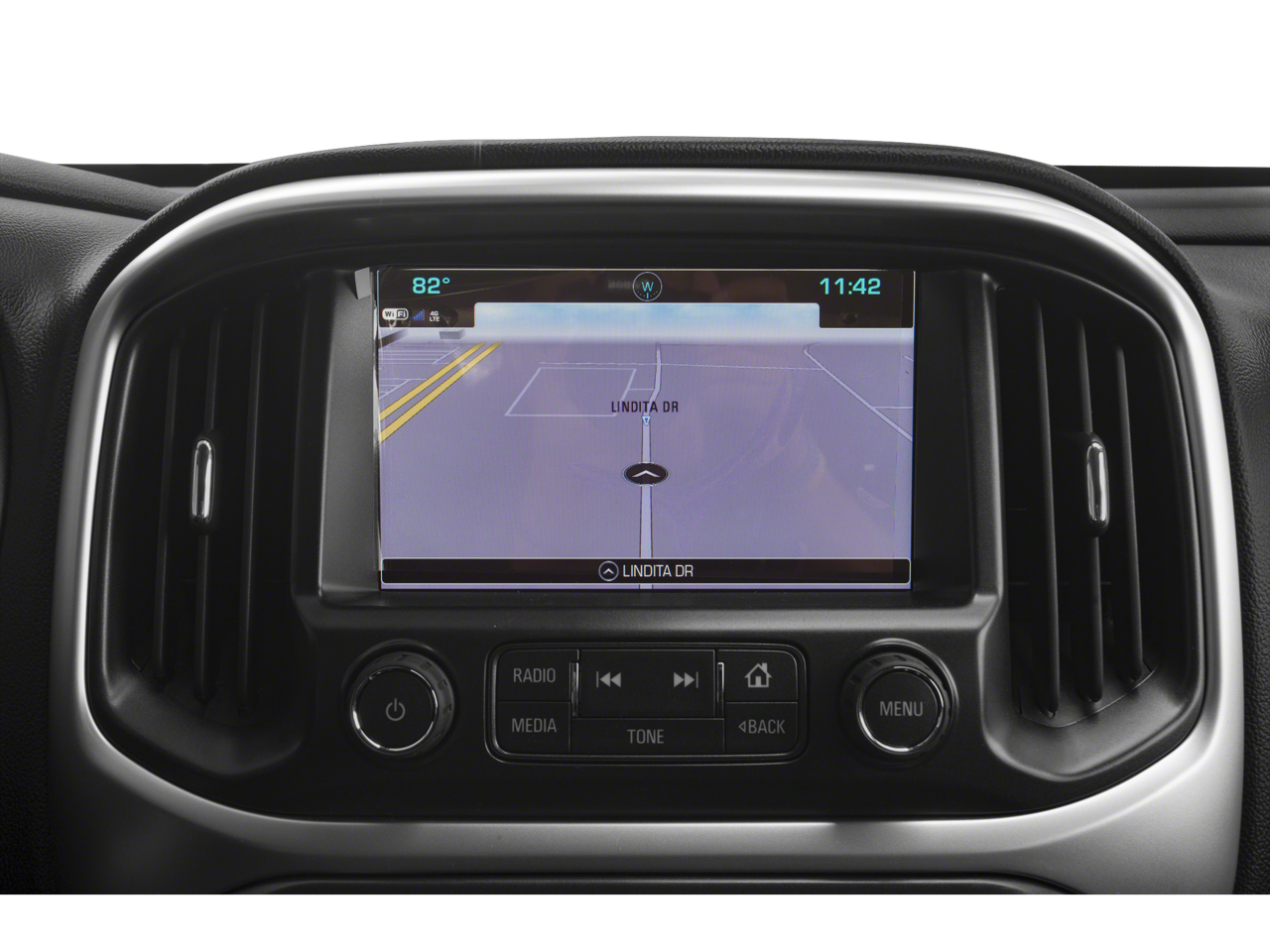 - The vehicle is equipped with a camera that displays an image of the area behind the vehicle on an interior display.