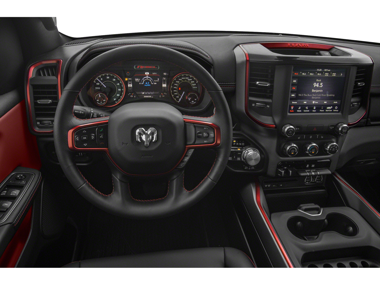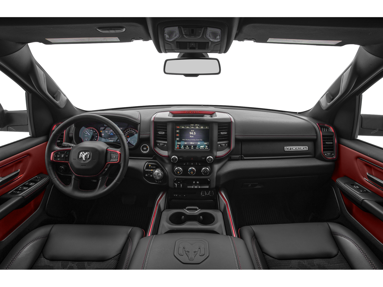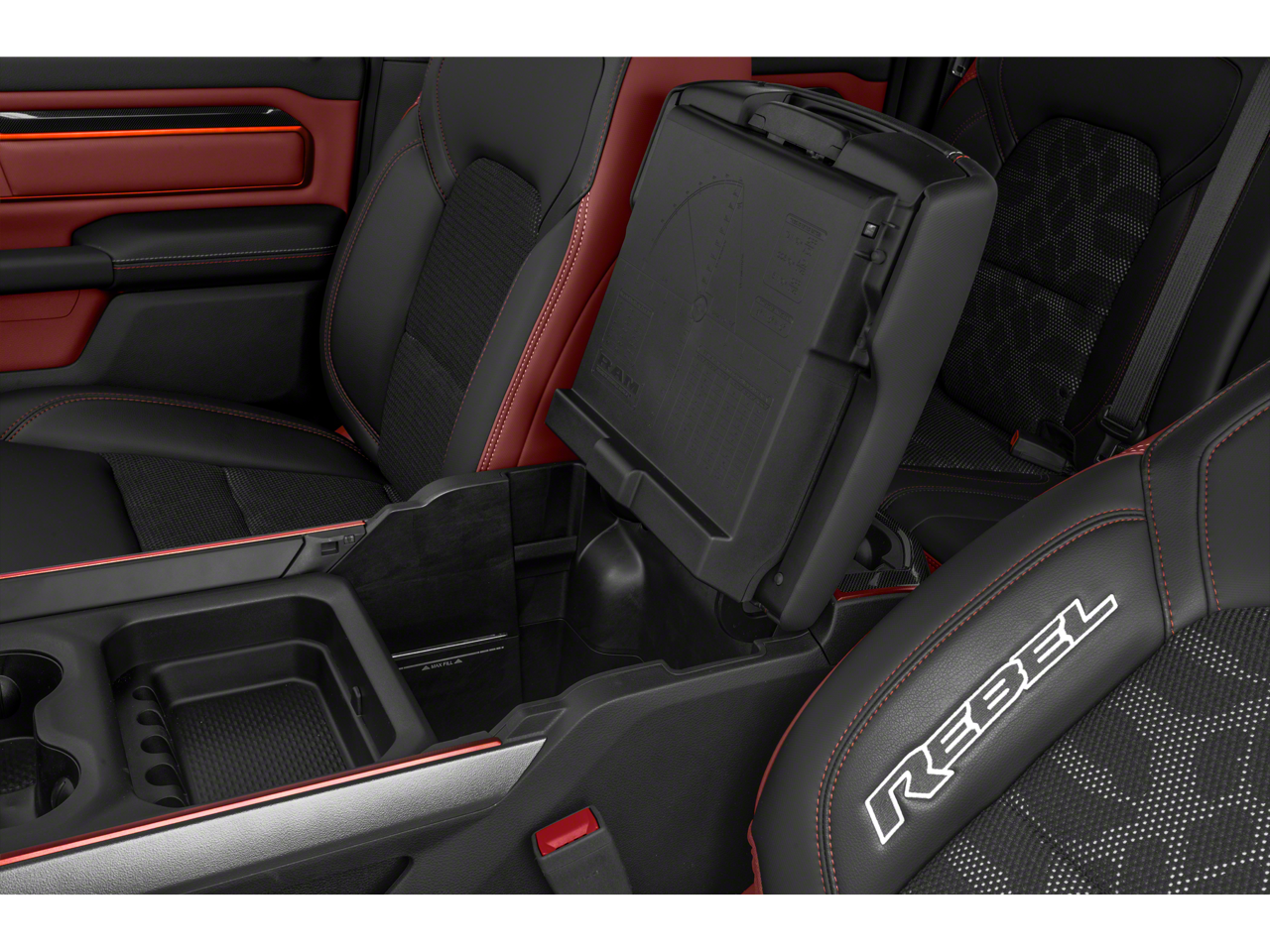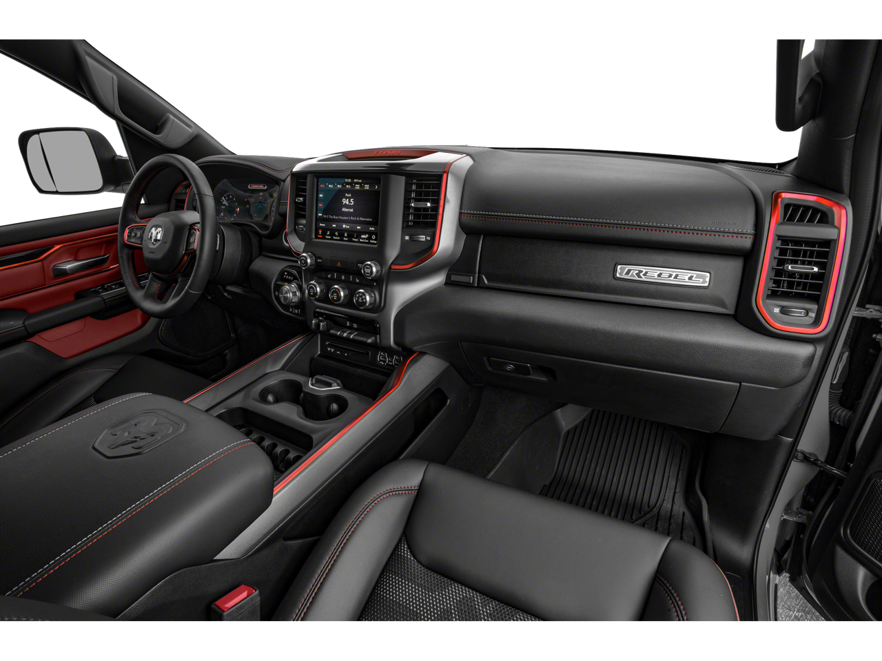 ENGINE: 5.7L V8 HEMI MDS VVT, TRANSMISSION: 8-SPEED AUTOMATIC (8HP75), QUICK ORDER PACKAGE 25W REBEL, MONOTONE PAINT, DIAMOND BLACK CRYSTAL PEARLCOAT, DIAMOND BLACK CRYSTAL PEARLCOAT, RED/BLACK, LUX LEATHER TRIMMED BUCKET SEATS, GVWR: 7,100 LBS, REBEL LEVEL 2 EQUIPMENT GROUP, REBEL 12, SPRAY IN BEDLINER, RADIO: UCONNECT 12 W/NAVIGATION, 9 AMPLIFIED SPEAKERS W/SUBWOOFER, REMOTE START SYSTEM, PARKSENSE FRONT/REAR PARK ASSIST W/STOP