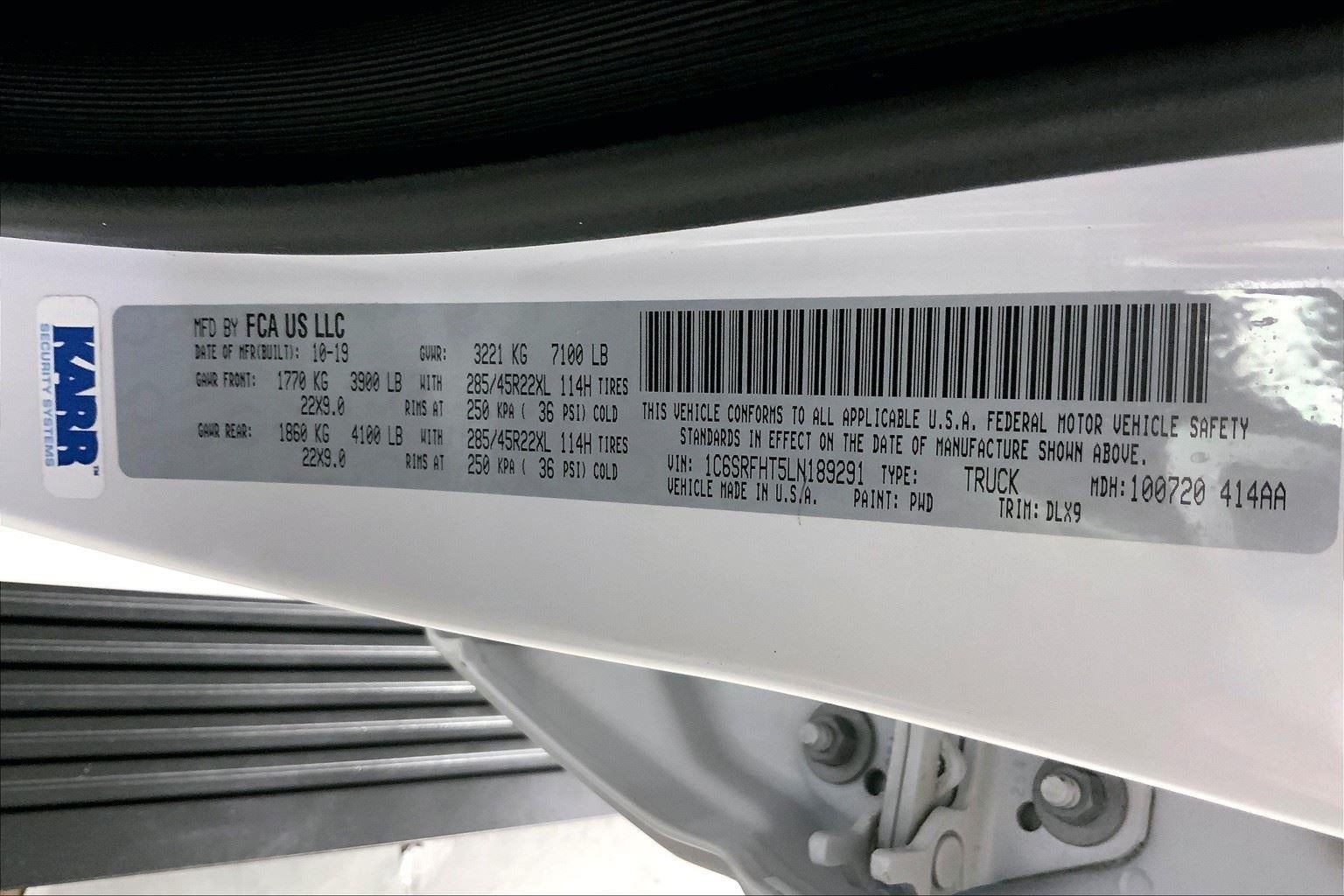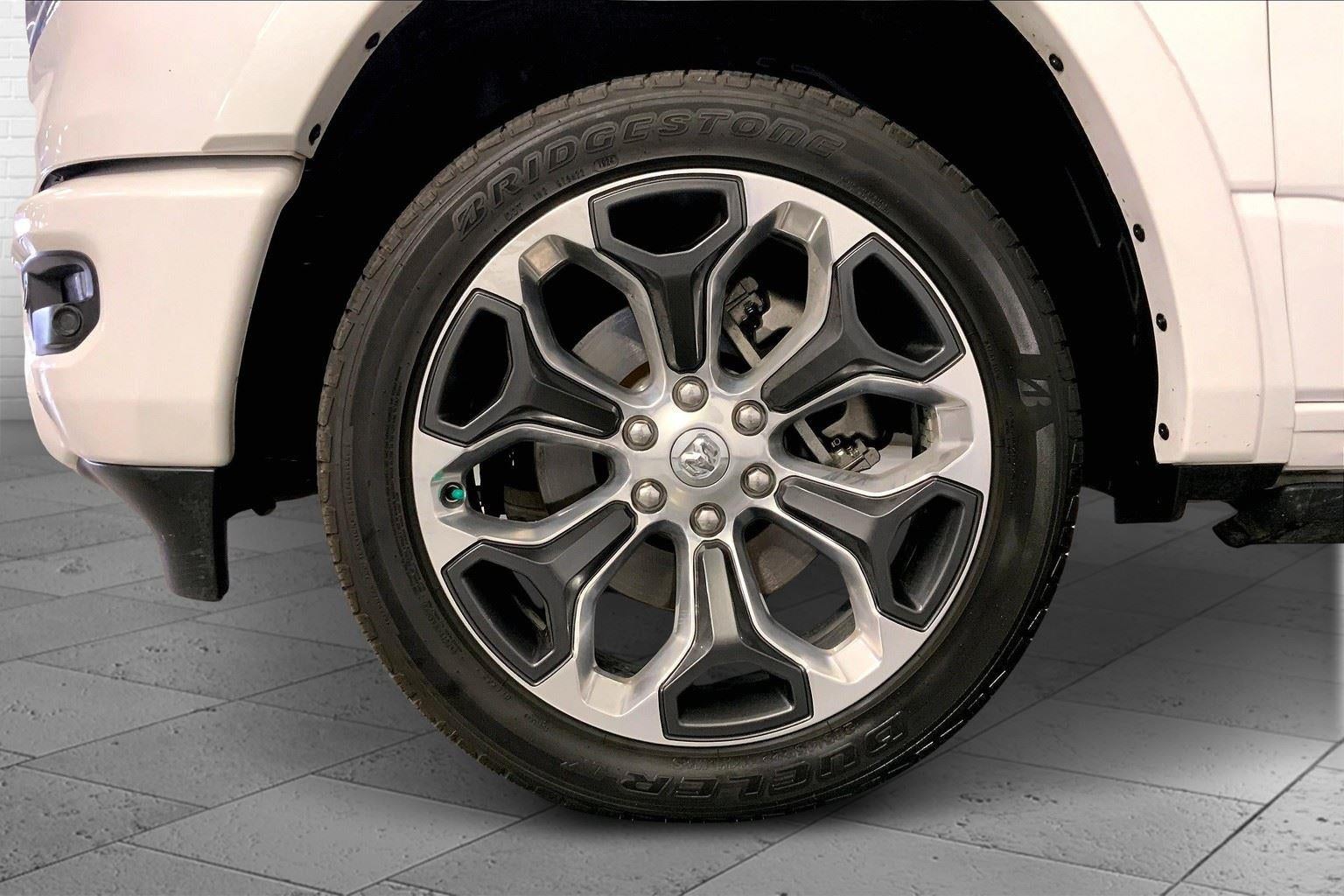 ENGINE: 5.7L V8 HEMI MDS VVT ETORQUE, TRANSMISSION: 8-SPEED AUTOMATIC (8HP75), QUICK ORDER PACKAGE 27M LIMITED, 3.92 REAR AXLE RATIO, WHEELS: 22"" X 9"" POLISH/PAINTED W/INSERTS, TIRES: 285/45R22XL BSW ALL SEASON, IVORY WHITE TRI-COAT PEARLCOAT, BLACK, PREMIUM LEATHER TRIMMED BUCKET SEATS, GVWR: 7,100 LBS, BED UTILITY GROUP, PROTECTION GROUP, BODY COLOR BUMPER GROUP, LIMITED LEVEL 1 EQUIPMENT GROUP, ANTI-SPIN DIFFERENTIAL REAR AXLE, TRAILER BRAKE CONTROL, 33 GALLON FUEL TANK, DUAL-PANE PANORAMIC SUNROOF, RAMBOX CARGO MANAGEMENT SYSTEM