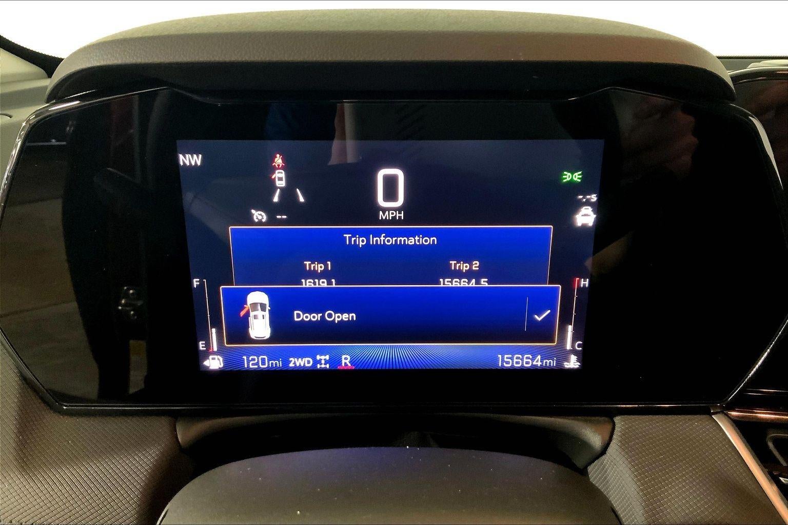 - The vehicle is equipped with a camera that displays an image of the area behind the vehicle on an interior display.